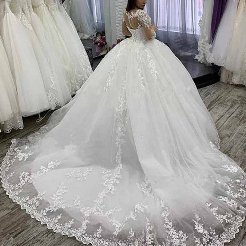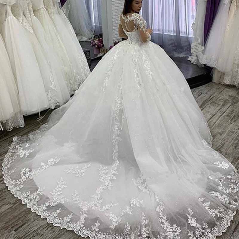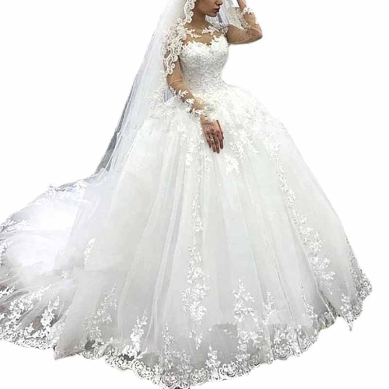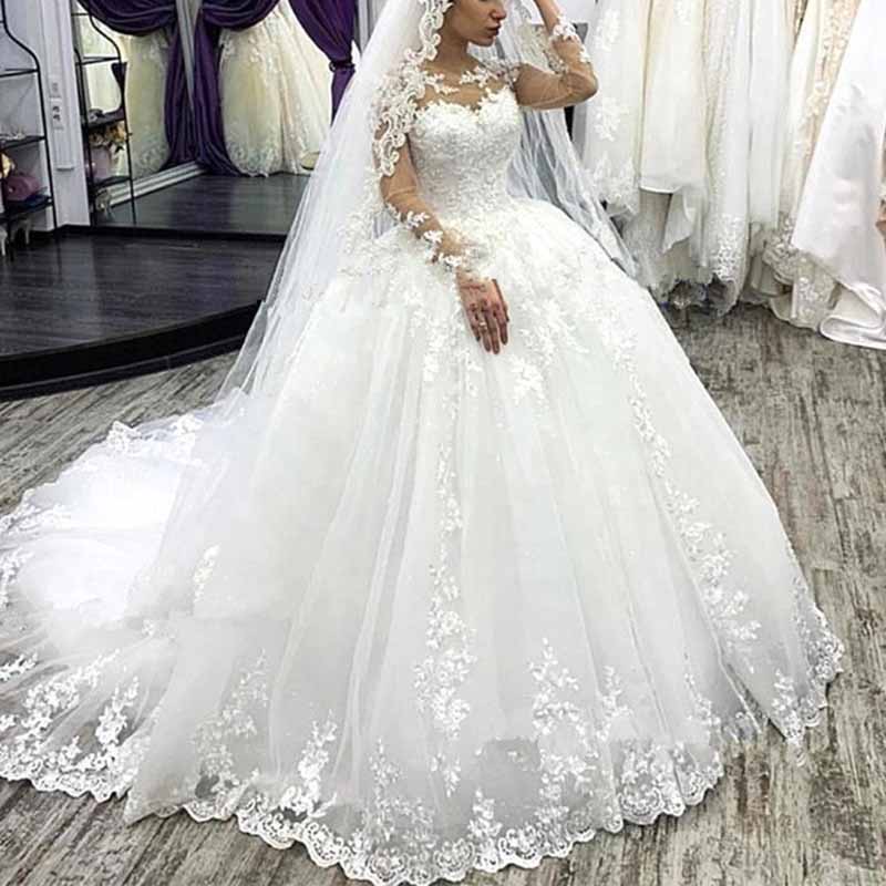 A-line Wedding Dresses Lace Applique Long Sleeves Bride Ball Gown
