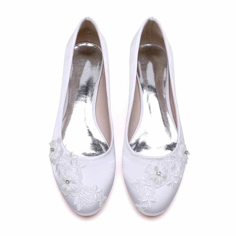Flat Satin Bridal Shoes With Flower Appliques