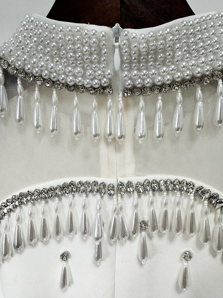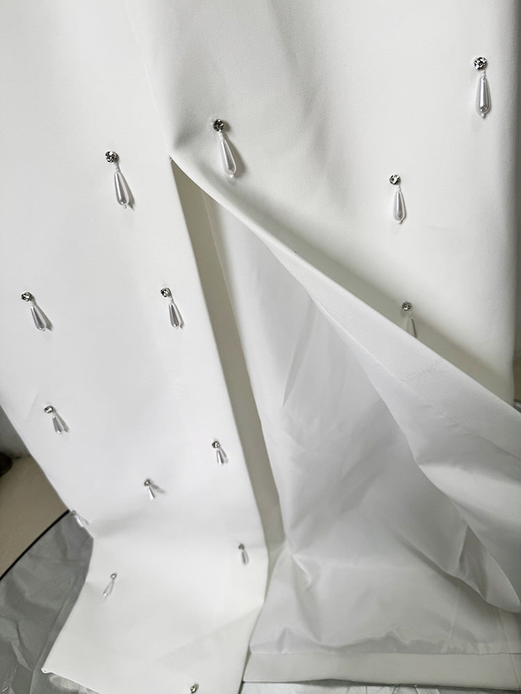 Rhinestone-Embellished White Pantsuit | One-Button Blazer for Events