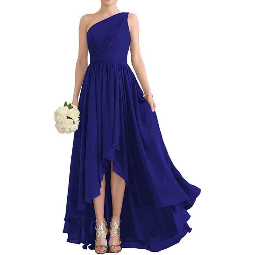 One Shoulder Bridesmaid Dresses High Low Chiffon Evening Formal Gown
