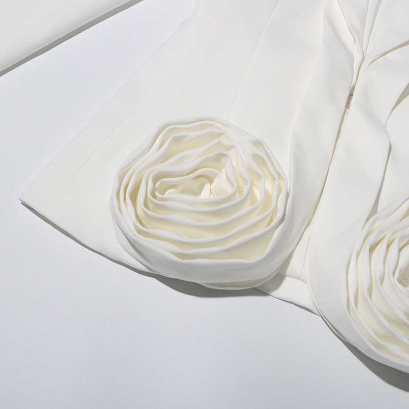 Wide-Leg Wedding Pantsuit in White Rose-appliques