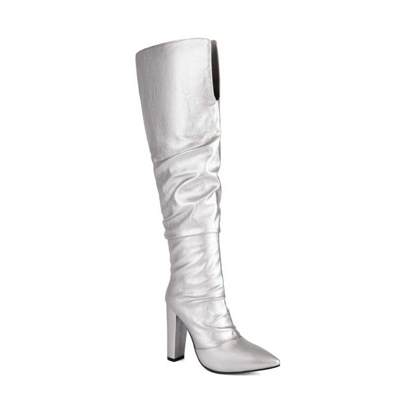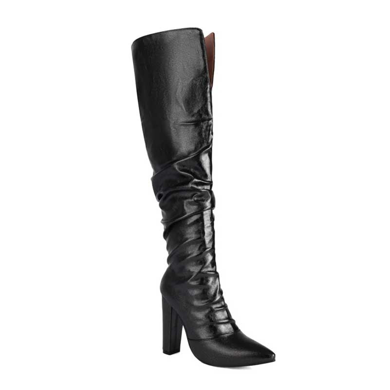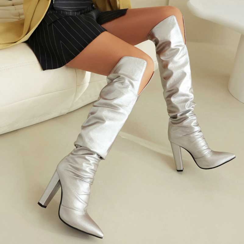 Shiny Faux Leather Boots Women - Over-the-Knee Platform
