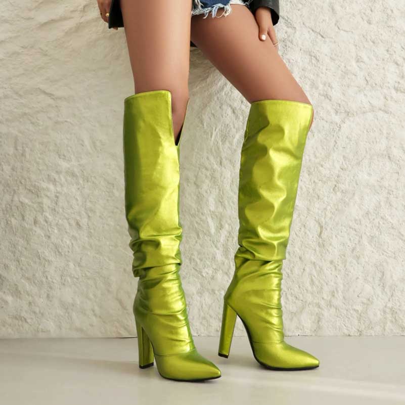 Women's Colorful Block Heel Knee-High Boots | Bold & Vibrant Style